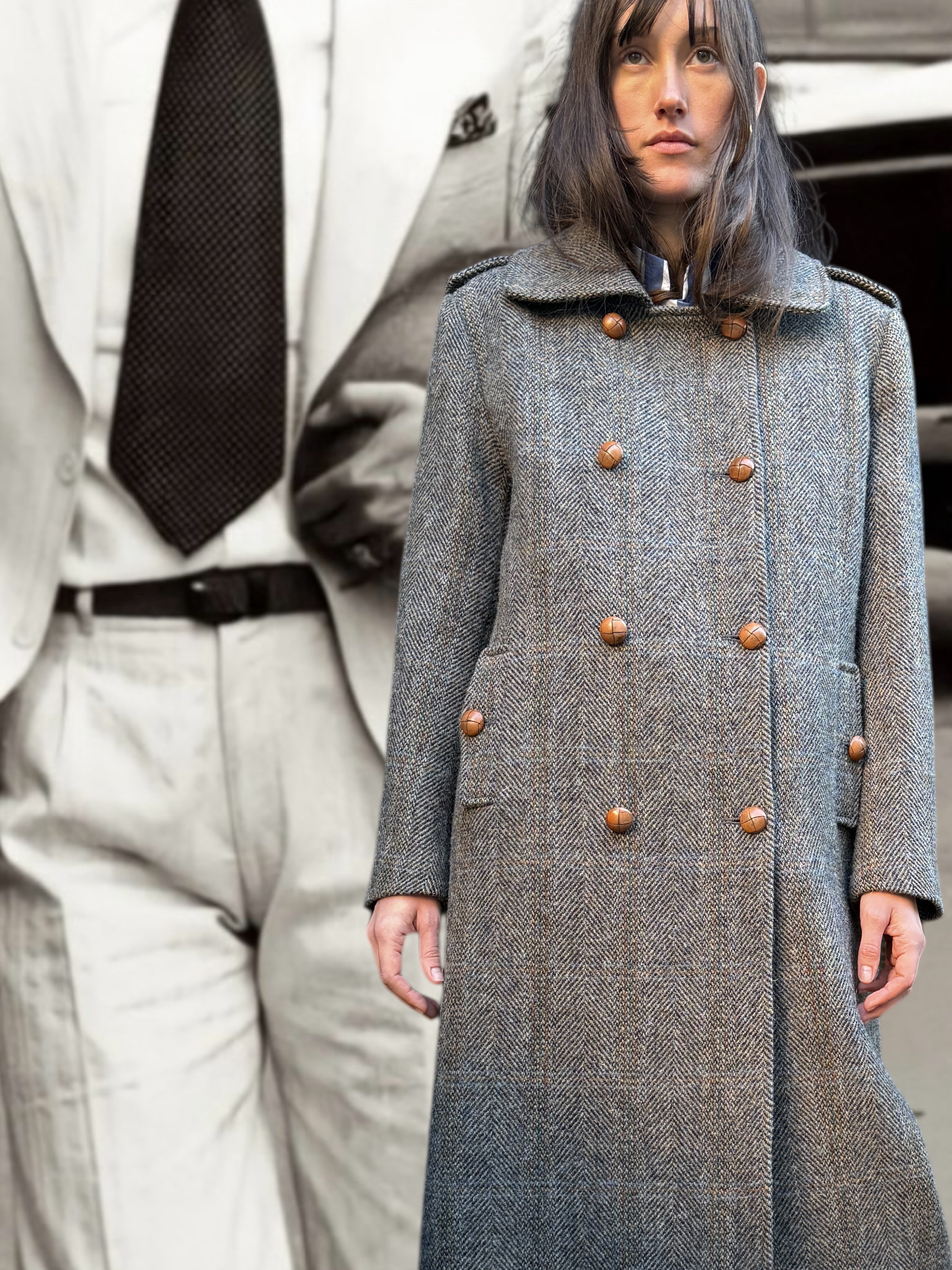 • Harrys Tweed Gris - 100% Laine ( boutons cuir fauve)
